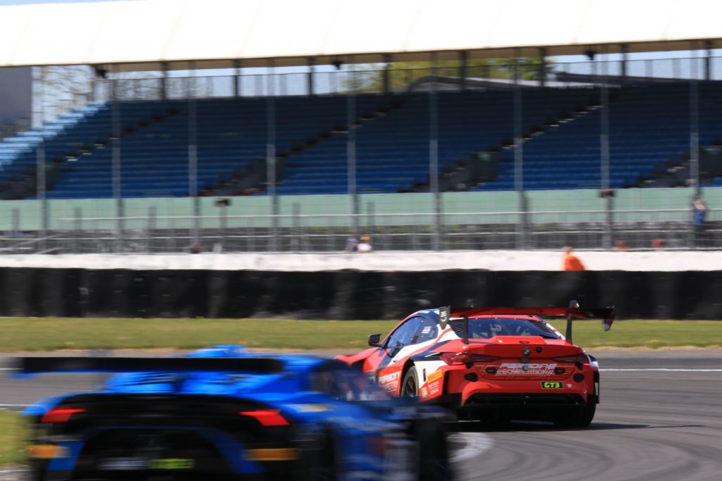Leung drove for the first session, putting in a 1:58.709 to lap the 3.66- mile Silverstone GP circuit nearly a second quicker than the #63 Barwell Motorsport Lamborghini Huracan GT3 Evo2 in the hands of Rob Collard. Third quickest was Charles Dawson in the #1 2 Seas Motorsport Mercedes-AMG GT3 Evo who put in a 1:59.71.